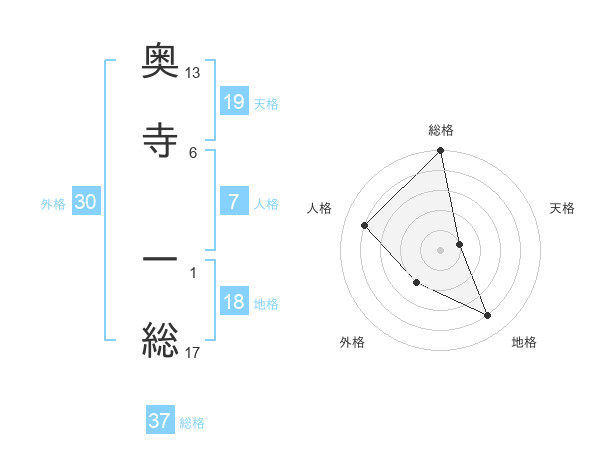 奥寺 一総さんの天格は19画の1点!