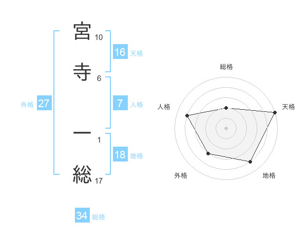 宮寺 一総さんを姓名の画数から五運を鑑定
