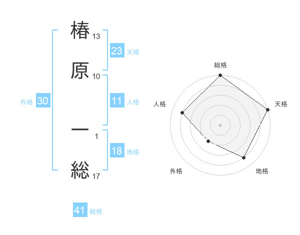 椿原 一総さんの天格は23画の5点!