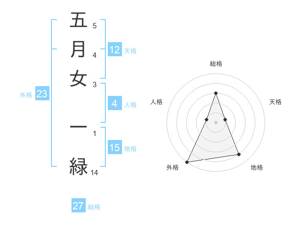 五月女 一緑さんを姓名の画数から五運を鑑定