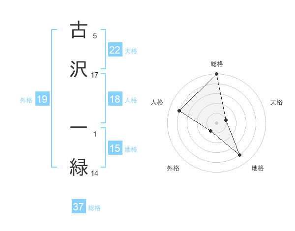 古沢 一緑さんを姓名の画数から五運を鑑定