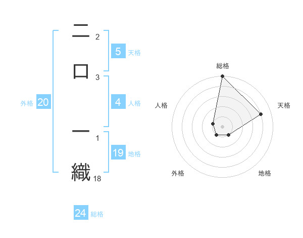 二口 一織さんの天格は5画の4点!
