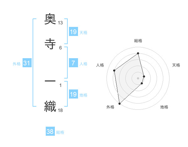 奥寺 一織さんを姓名の画数から五運を鑑定