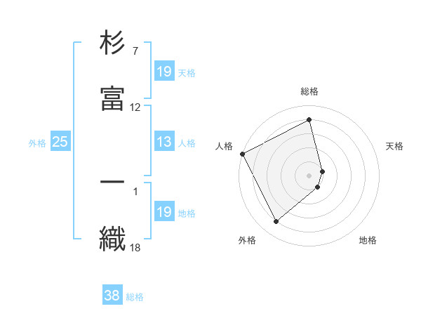 杉富 一織さんの総格は38画の4点!