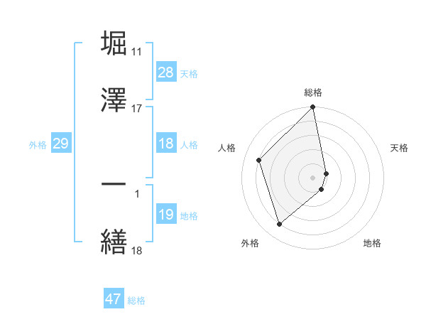 堀澤 一繕さんの総格は47画の5点!