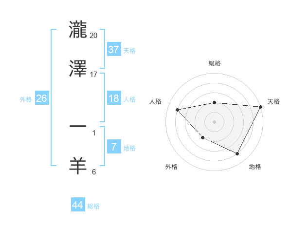 瀧澤 一羊さんを姓名の画数から五運を鑑定
