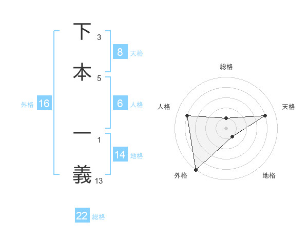 下本 一義さんの総格は22画の1点!