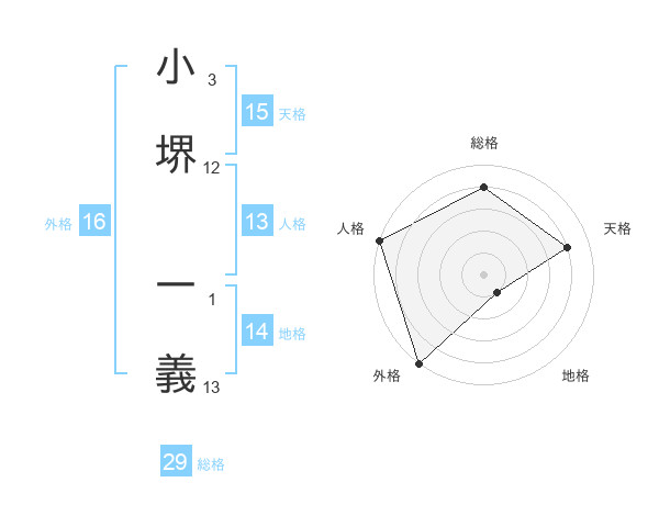 小堺 一義さんの総格は29画の4点!