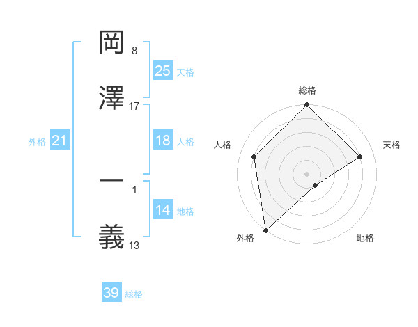 岡澤 一義さんを姓名の画数から五運を鑑定