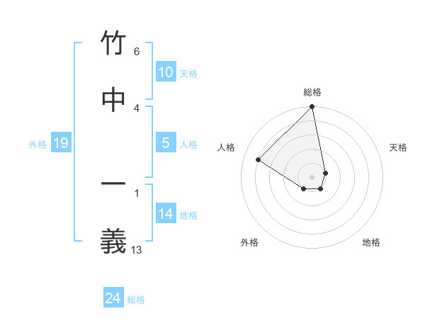 竹中 一義さんの総格は24画の5点!