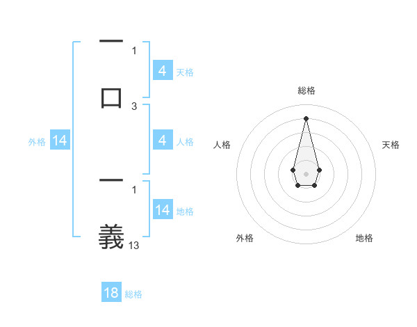 一口 一義さんの総格は18画の4点!