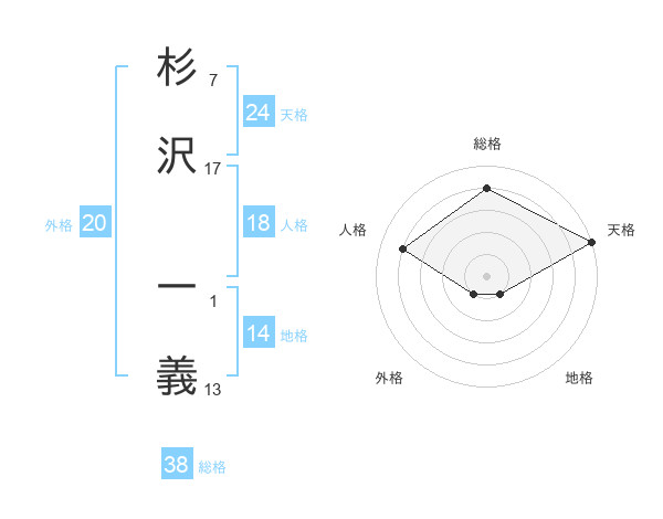 杉沢 一義さんの総格は38画の4点!