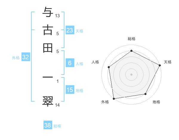 与古田 一翠さんを姓名の画数から五運を鑑定