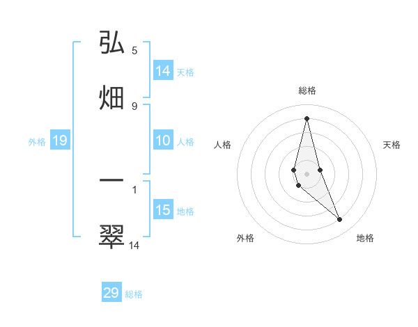 弘畑 一翠さんを姓名の画数から五運を鑑定