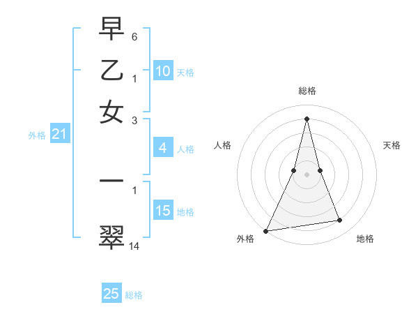 早乙女 一翠さんの総格は25画の4点!