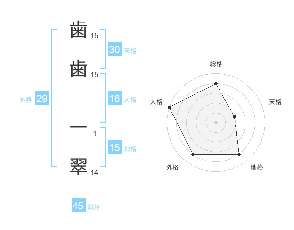 歯歯 一翠さんの総格は45画の4点!