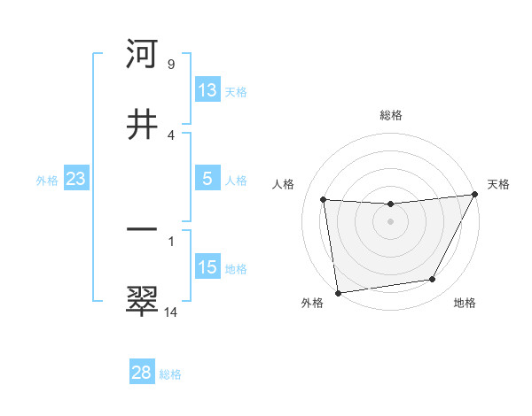 河井 一翠さんの外格は23画の5点!