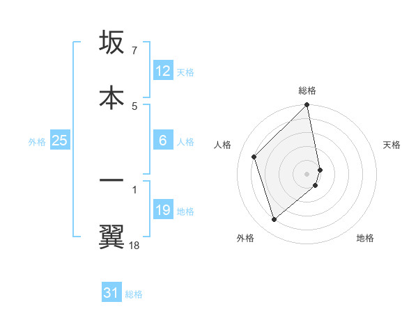 坂本 一翼さんを姓名の画数から五運を鑑定