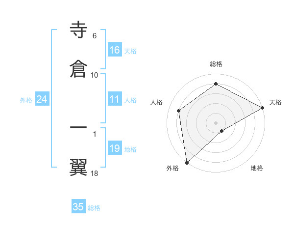 寺倉 一翼さんを姓名の画数から五運を鑑定