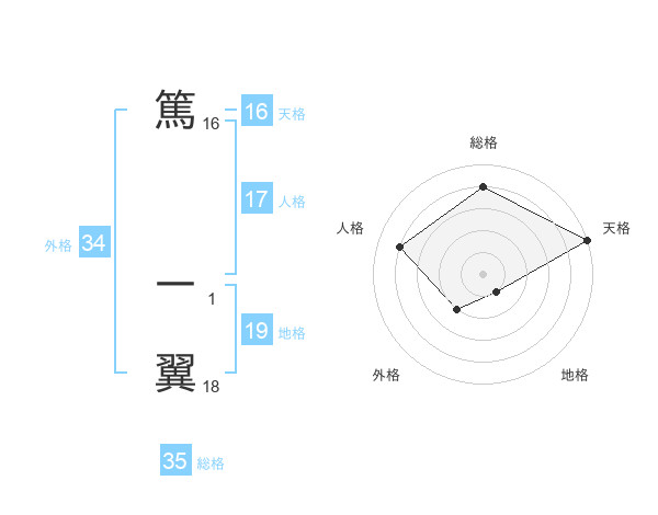 篤 一翼さんの総格は35画の4点!