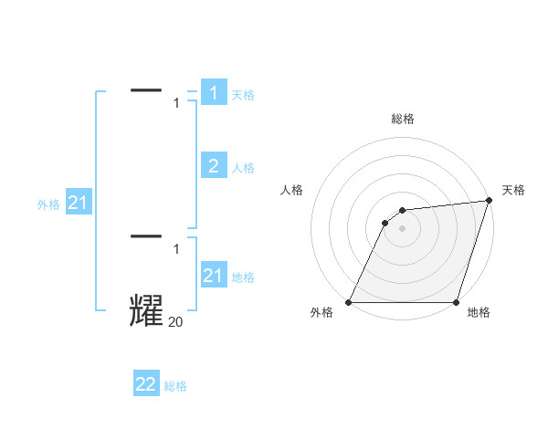 一 一耀さんの外格は21画の5点!
