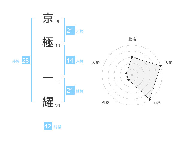 京極 一耀さんの天格は21画の5点!