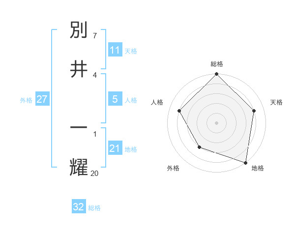 別井 一耀さんの総格は32画の5点!