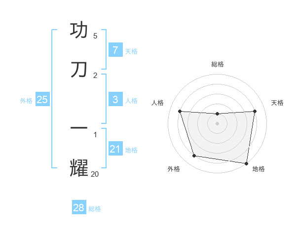 功刀 一耀さんの外格は25画の4点!