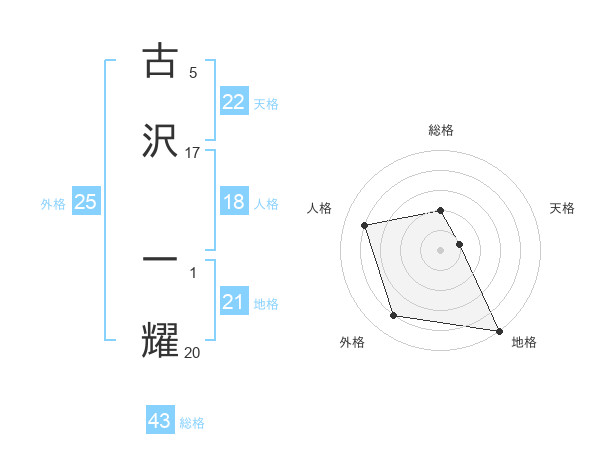 古沢 一耀さんを姓名の画数から五運を鑑定