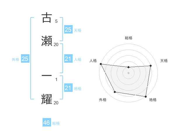 古瀬 一耀さんの地格は21画の5点!