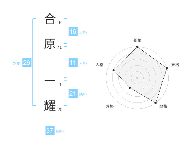 合原 一耀さんの地格は21画の5点!