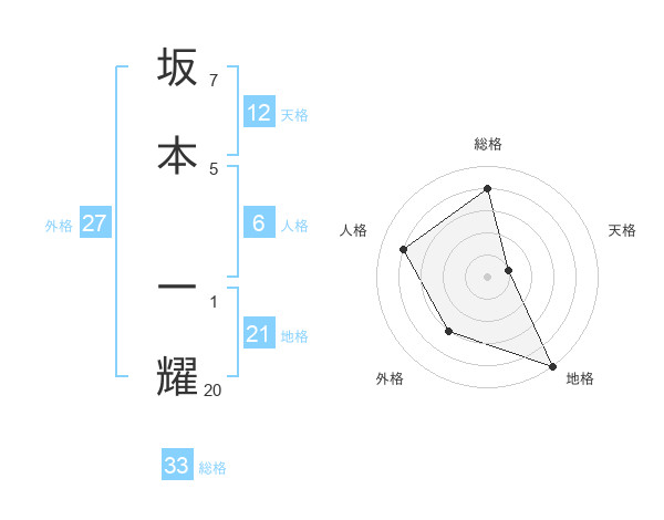 坂本 一耀さんの地格は21画の5点!