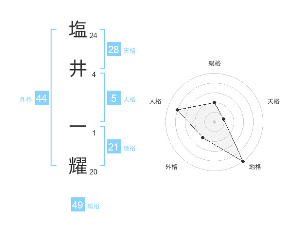 塩井 一耀さんを姓名の画数から五運を鑑定