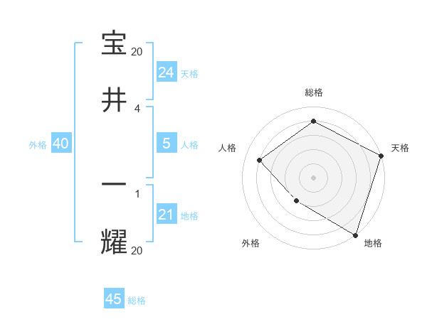 宝井 一耀さんを姓名の画数から五運を鑑定