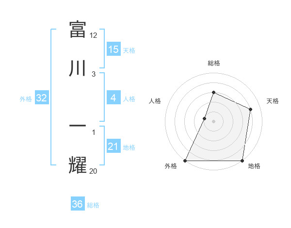 富川 一耀さんの総格は36画の3点!