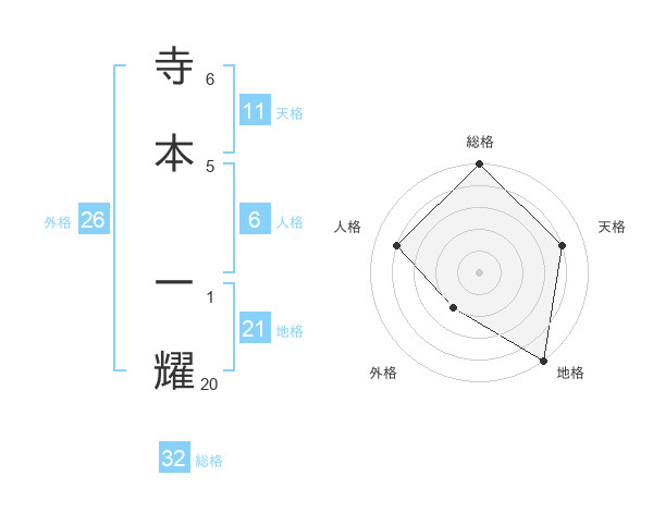 寺本 一耀さんの総格は32画の5点!