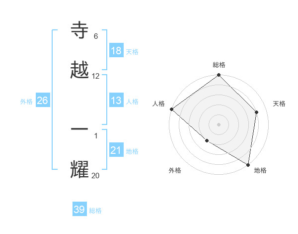 寺越 一耀さんを姓名の画数から五運を鑑定
