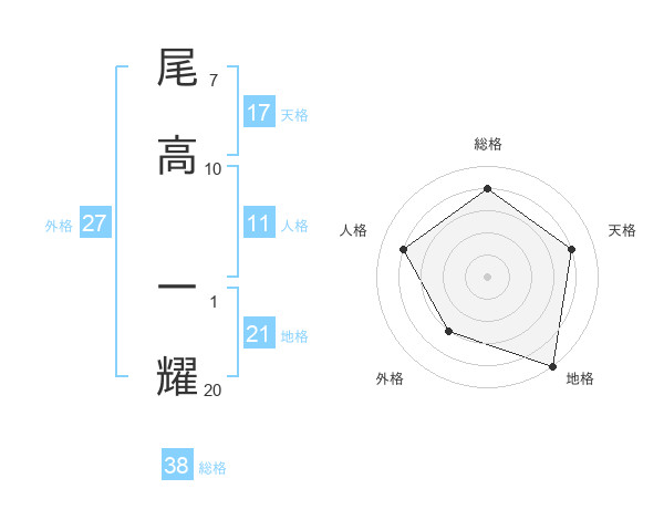 尾高 一耀さんを姓名の画数から五運を鑑定