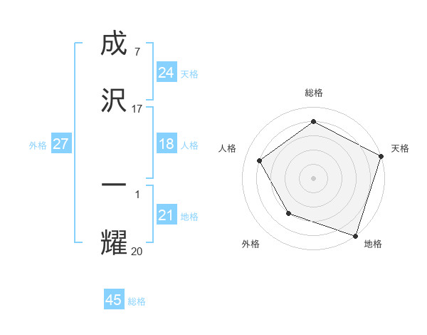 成沢 一耀さんを姓名の画数から五運を鑑定
