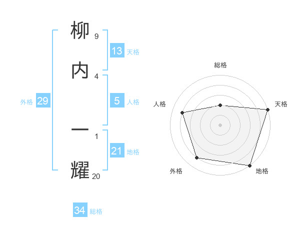 柳内 一耀さんを姓名の画数から五運を鑑定