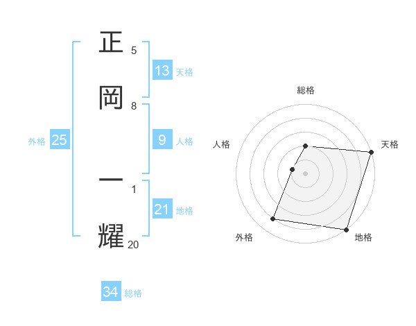 正岡 一耀さんを姓名の画数から五運を鑑定