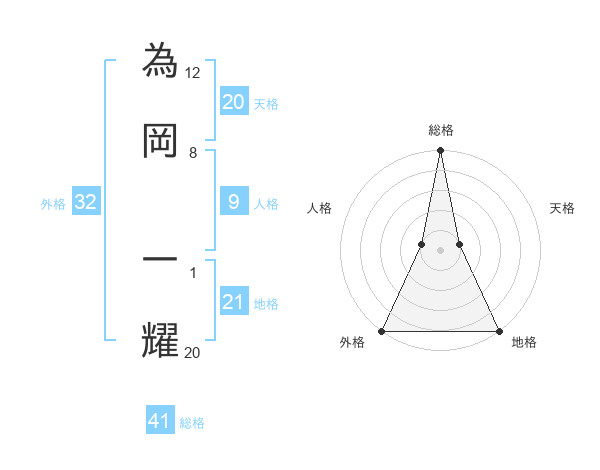 為岡 一耀さんの外格は32画の5点!