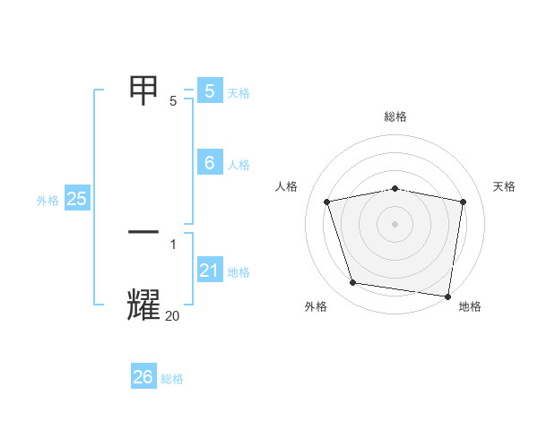 甲 一耀さんの総格は26画の2点!