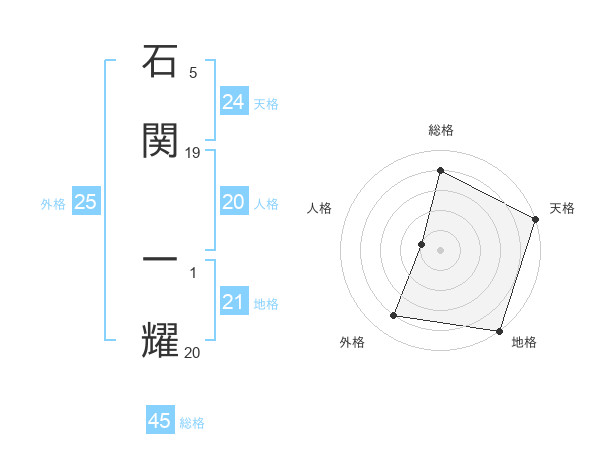石関 一耀さんの総格は45画の4点!
