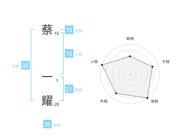 蔡 一耀さんを姓名の画数から五運を鑑定