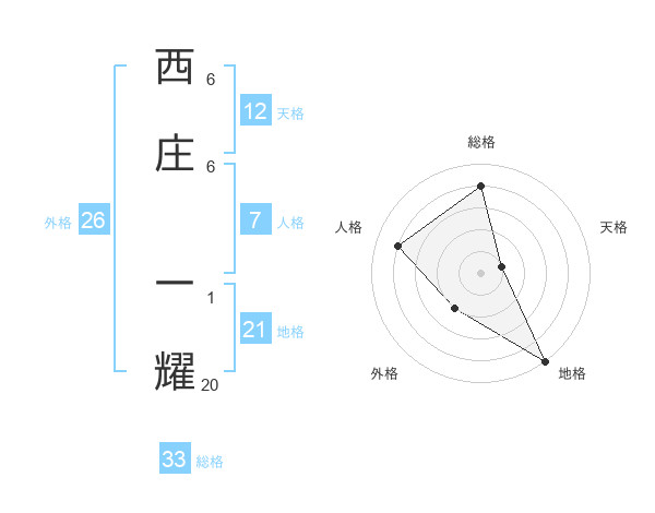 西庄 一耀さんの地格は21画の5点!
