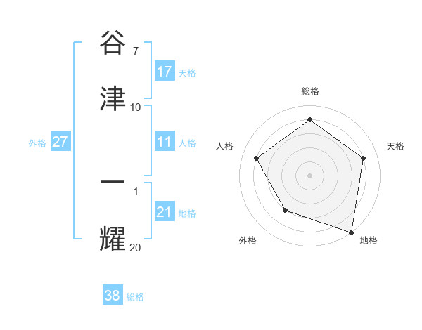 谷津 一耀さんを姓名の画数から五運を鑑定