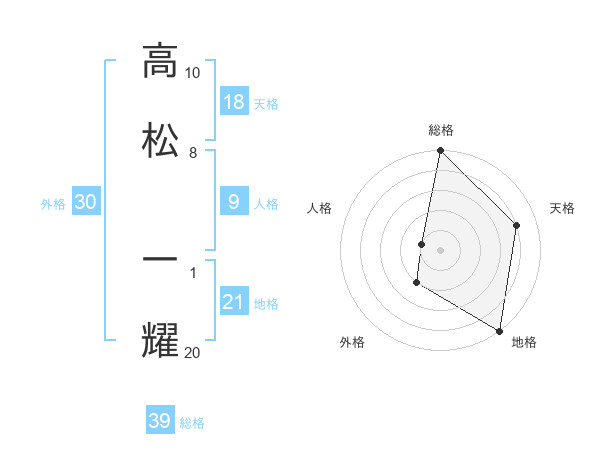 高松 一耀さんの総格は39画の5点!