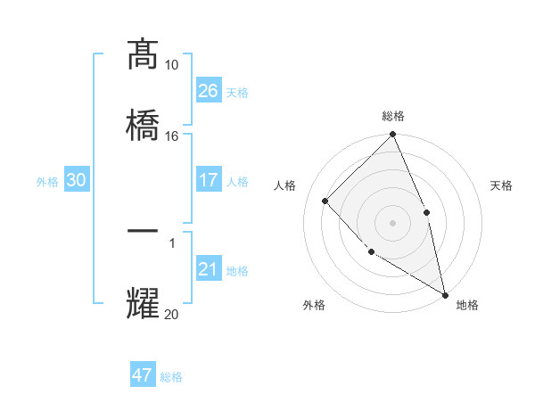 髙橋 一耀さんの総格は47画の5点!