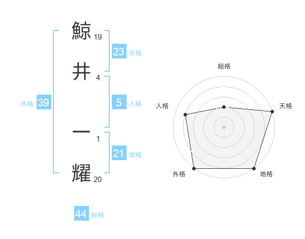 鯨井 一耀さんを姓名の画数から五運を鑑定